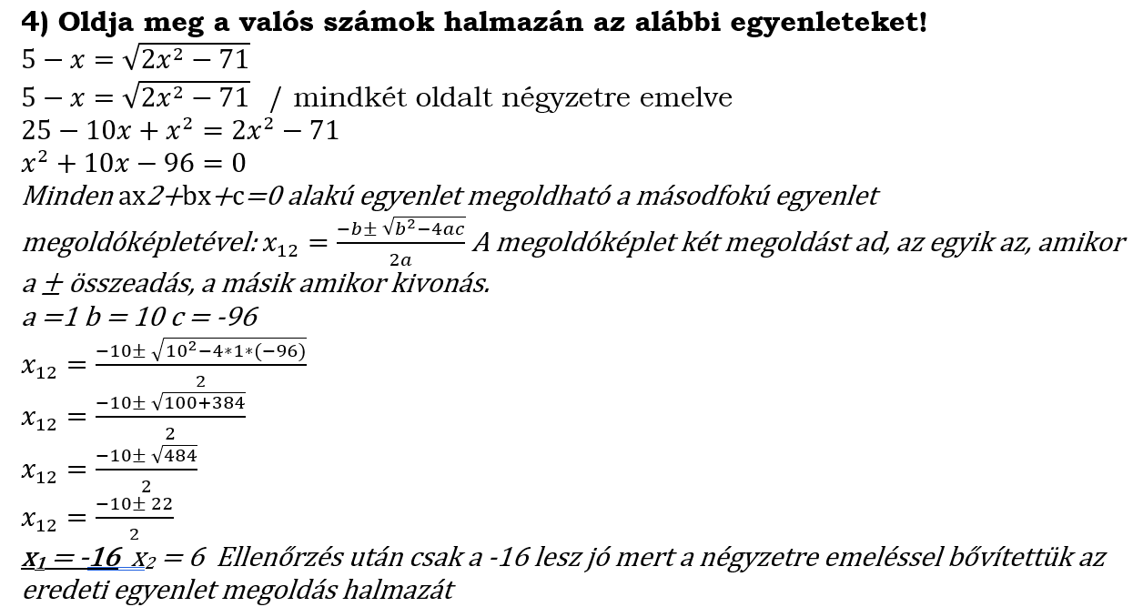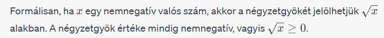 Fontos megjegyezni, hogy a négyzetgyök a negatív valós számokra nem értelmezett a valós számok halmazában, mivel nincs olyan valós szám, amelyet négyzetre emelve negatív eredményt adna.